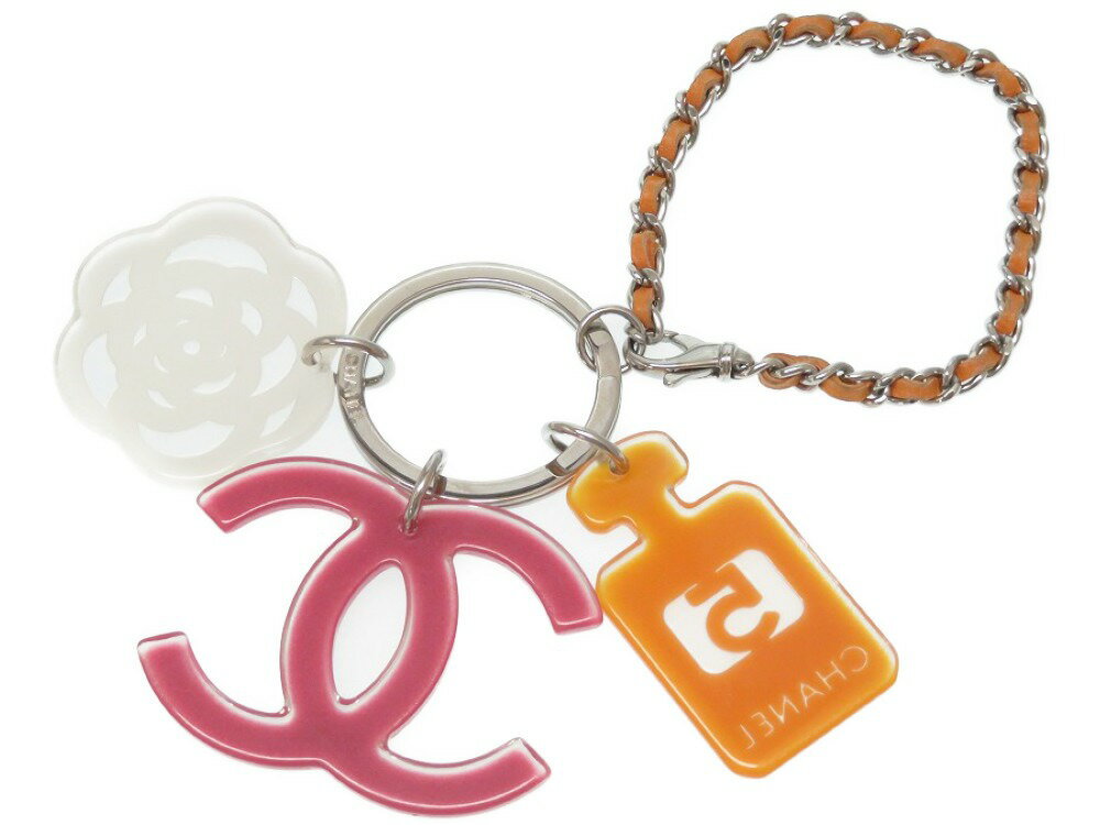 【20%OFF】美品 シャネル ココマーク カメリア 香水モチーフ チャーム メタル プラスチック レッド オレンジ ホワイト キーホルダー0304 【中古】 CHANEL【セール】
