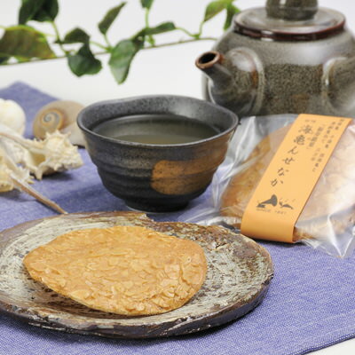 海亀んせなか 御菓子司前田家 鹿児島県 吹上砂丘に産卵に来る海亀の大きな甲羅をイメージしたアーモンドたっぷりの芳ばしいせんべい。